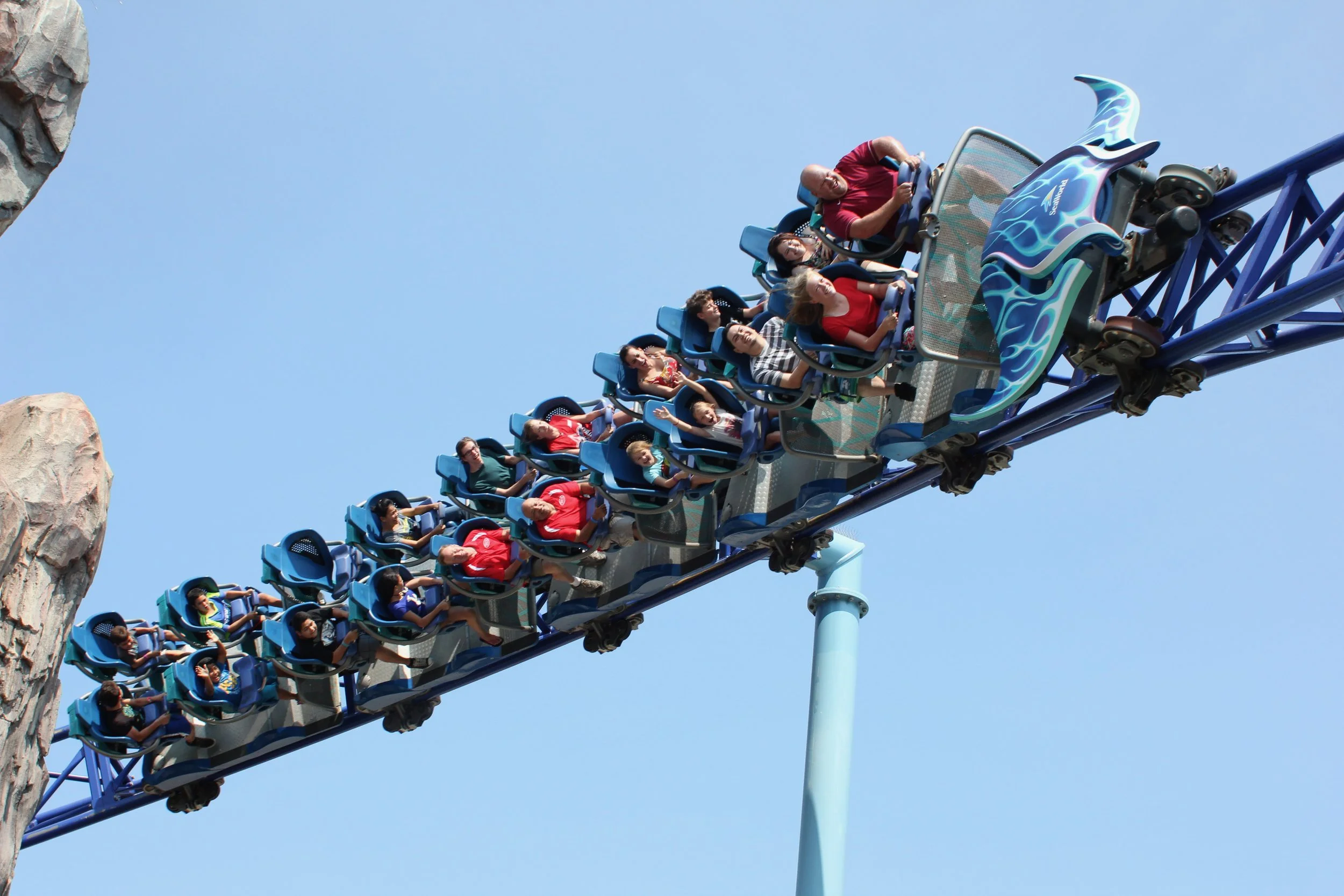 One of my kids on a roller coaster, 2014. (I’m on the ground with the coats.)